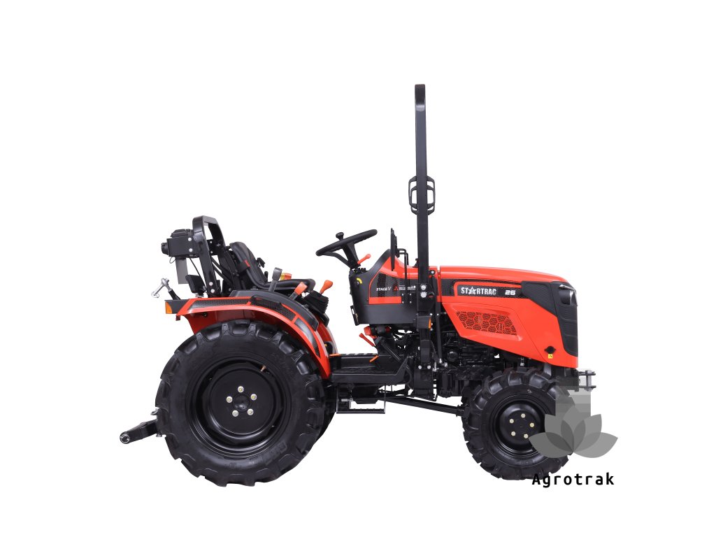 STARTRAC 26 MID ROPS je výkonný a kompaktný stroj, ideálny pre široké spektrum poľnohospodárskych a záhradníckych prác. S výkonom 25 koní a trojvalcovým naftovým motorom Mitsubishi s objemom 1319 cm³ zabezpečuje skvelý výkon a efektívnosť. Mechanická prevodovka s 9 rýchlosťami vpred a 3 vzad umožňuje plynulé ovládanie, pričom pohon 4x4 prispieva k vynikajúcej trakcii v náročných podmienkach. Malotraktor je prvým svojho typu s medzinápravovým ochranným rámom vo svojej kategórií.