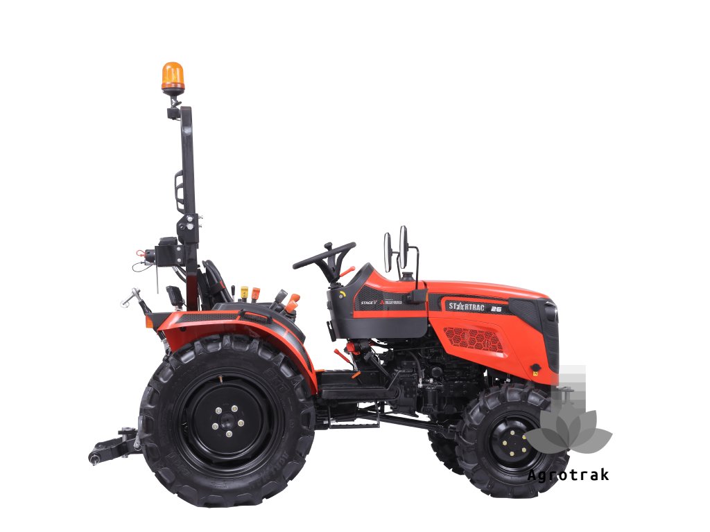 STARTRAC 26 je robustný a všestranný stroj ideálny pre poľnohospodárske a záhradnícke práce. S výkonom 25 koní a výkonným trojvalcovým motorom Mitsubishi ponúka efektívny krútiaci moment. Tento model disponuje mechanickou prevodovkou 9+3, čo zabezpečuje plynulé a efektívne ovládanie, a pohonom 4x4 pre lepšiu trakciu v náročných terénoch. STARTRAC 26 navyše umožňuje pripojenie rôznych zariadení vďaka stabilnému systému TBZ a poskytuje pohodlné ovládanie v ergonomicky navrhnutom paneli. S hmotnosťou od 929 kg a kompaktnými rozmermi je ideálny pre prácu v obmedzených priestoroch záhrad.